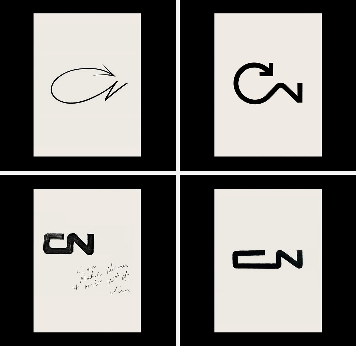 On a flight to New York, Fleming sketched out ideas on a cocktail napkin. He explored ideas around combining the letters CN, some with the addition of an arrow. Each brought together the C and N as one continuous line, said to be ‘rushing straight into the future’. "Apart they are two separate letters-joined together they become a single line running from one point to another." The result conveyed a railroad on the move as the eye moves from C to N, the total image suggests fluidity and motion. “It’s a route line that incidentally spells CN,” Allan explained when presenting the logo. “It represents the movement of people, materials, and messages from one point to another.”