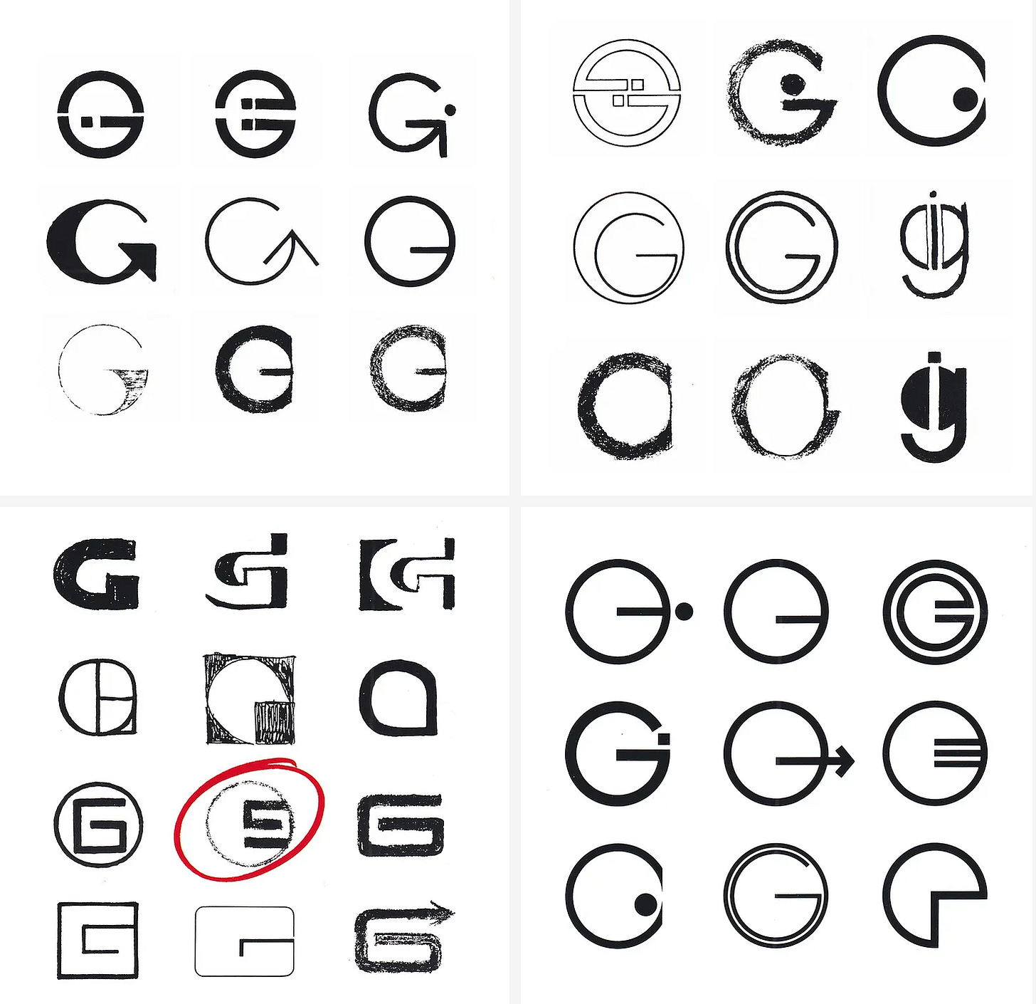 The 'G' in Gillette became the design team’s focal point. They explored various configurations within a circle, testing multiple iterations to find a ‘delicate’ balance between simplicity and noticeability. They adjusted, across hundreds of different variations, the weight of lines and the positioning of the cross bar. The team tried using additional graphic elements such as negative space, arrows, inlines outlines and texture, and tested concepts such as light and shadow, depth and dimensionality, and various degrees of geometric abstraction.