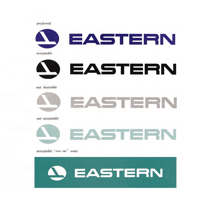Today, in Issue 7 of LogoArchive’s Research Archive, I managed to find some images of the Eastman Kodak brand manual, we have some colour graphics for Wave radio, concepts for Japanese department store Matsuya and assets from the Eastern Airlines’ brand identity. Last week on Logo Histories we covered the story of Saul Bass’ ALCOA logo, and next week, will share the Expo 70 logo, illustrated with 15 concepts created by renowned Japanese designers Ikko Tanaka, Yusaku Kamekura and Kazumasa Nagai. Subscribe here and receive this straight to your inbox on Tuesday. Coming later this year, Gerstner’s Shell, Japanese Railways and Citibank.
