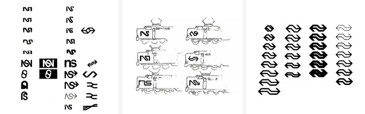 To break the deadlock, Gert Dumbar (who would later found Studio Dumbar) pursued an abstract approach, but not entirely removed from what had previously been explored, but the initials would no longer be a constraining factor. Some board members, accustomed to the familiar 'NS,' resisted the approach, leading to tensions over the shift in ‘symbol design policy’. A compromise emerged, to integrate the abstract logo with the letters. Through extensive trial and refinement, the abstract logo underwent many small incremental adjustments. These included altering the arrow angle, line thickness and the volume of the negative space.