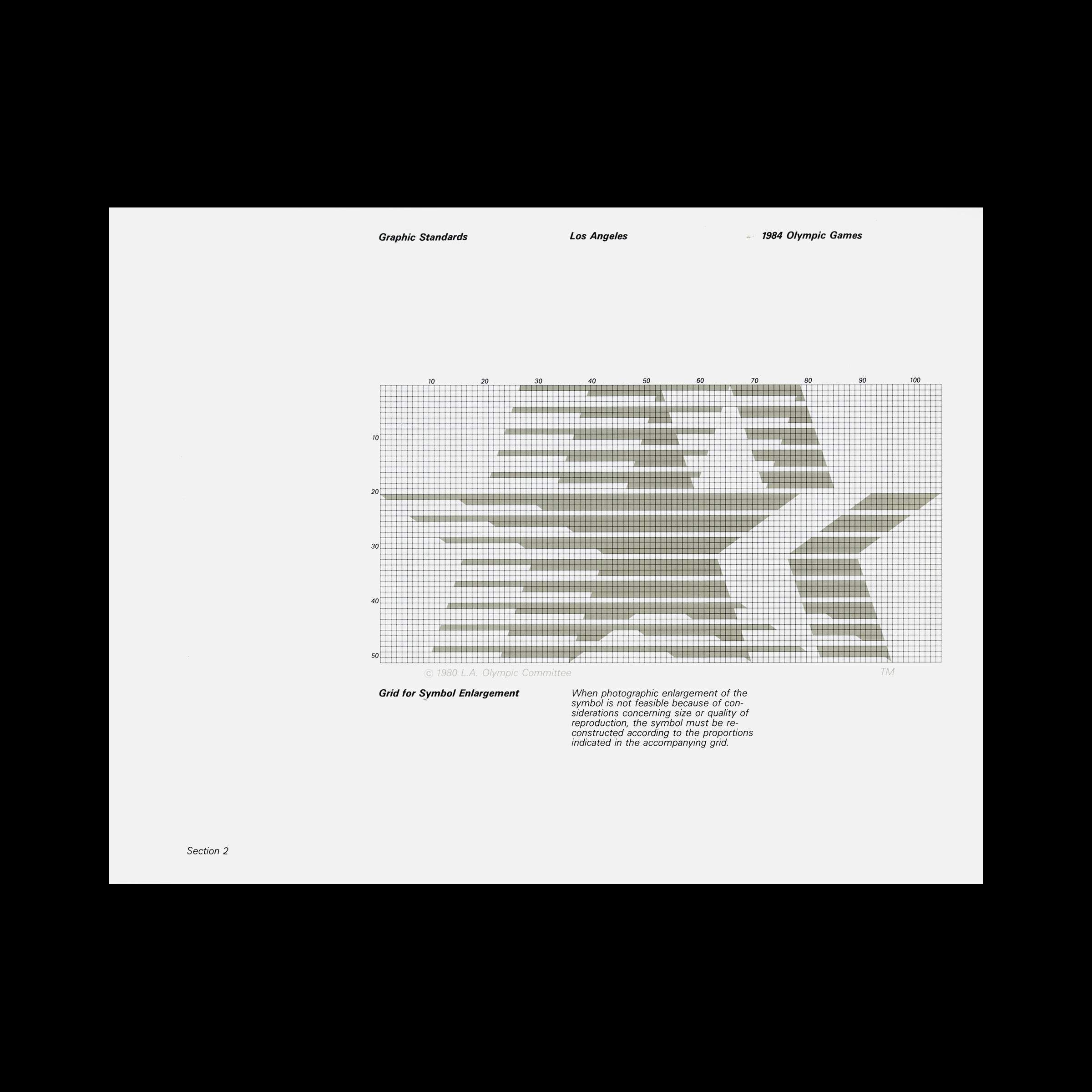 The design for the Games, and perhaps its defining and most widely-remembered quality, was the bright and impressive use of colour and the visual festivity created by Deborah Sussman. However, the logo, which played a supporting rather than focal role within this identity, was designed back in 1979 by Robert Miles Runyan Associates and approved in 1980, four years ahead of the Games.