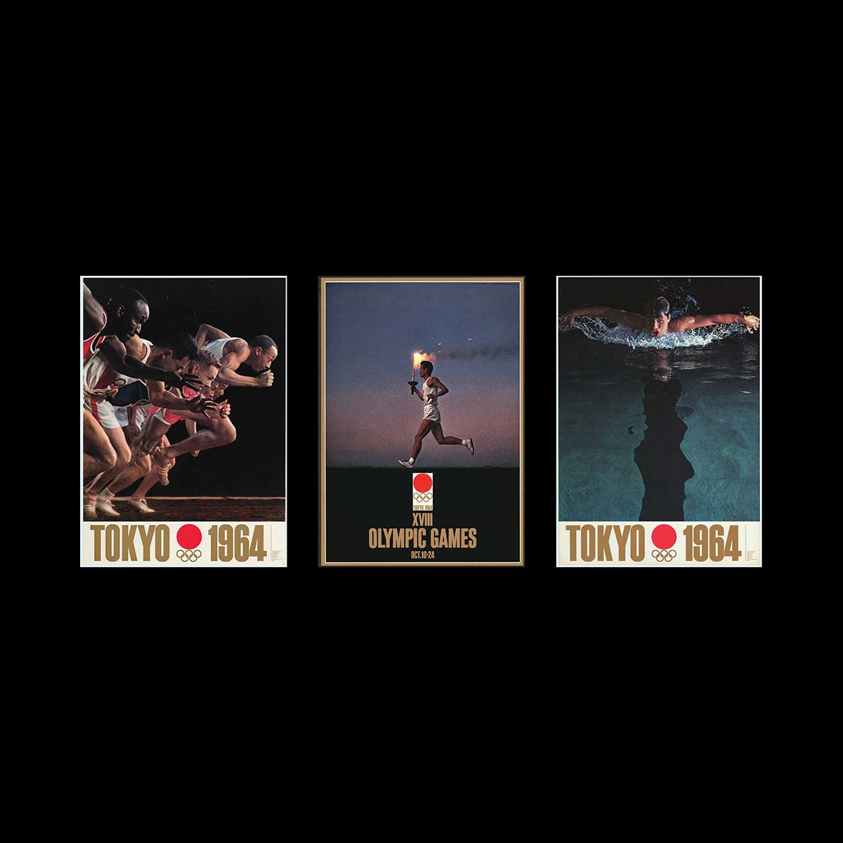 Kamekura’s design was unanimously selected as the winner, and as a result, he was also commissioned to produce the first official poster. This used the Tokyo Olympic symbol ‘without modification’ – as a proud expression that required no further embellishment. He would also go on to design a series of event posters.